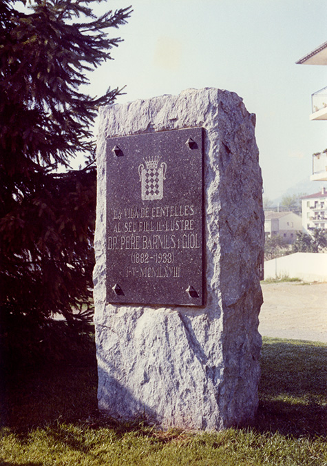 L’1 de maig de 1968 es van fer dos actes a la memòria de Pere Barnils. Una sessió acadèmica a l’Ajuntament on va parlar el Dr. Josep Maria Torres de Gassó, l’introductor de la logopèdia a Catalunya, i es va col·locar un monòlit amb una làpida al parc del Pla del Mestre on es pot llegir “La vila de Centelles al seu fill il·lustre Dr. Pere Barnils i Giol (1882-1933). 1-V-MMCLXVIII”.