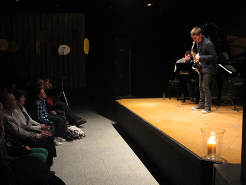 Patrícia Masuet, responsable de comunicaió de les Vesprades de Tardor, i el jove saxofonista centellenc Josep Valldeneu