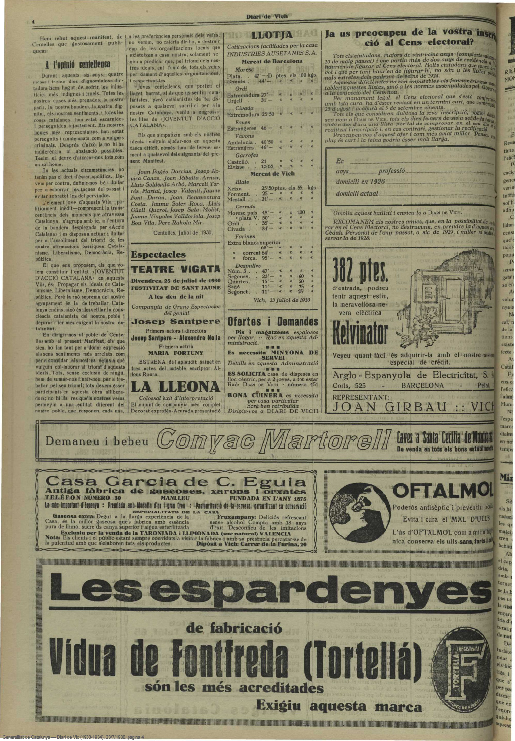 Diari de Vich. 23 de juliol de 1930. memoriaesquerra.cat