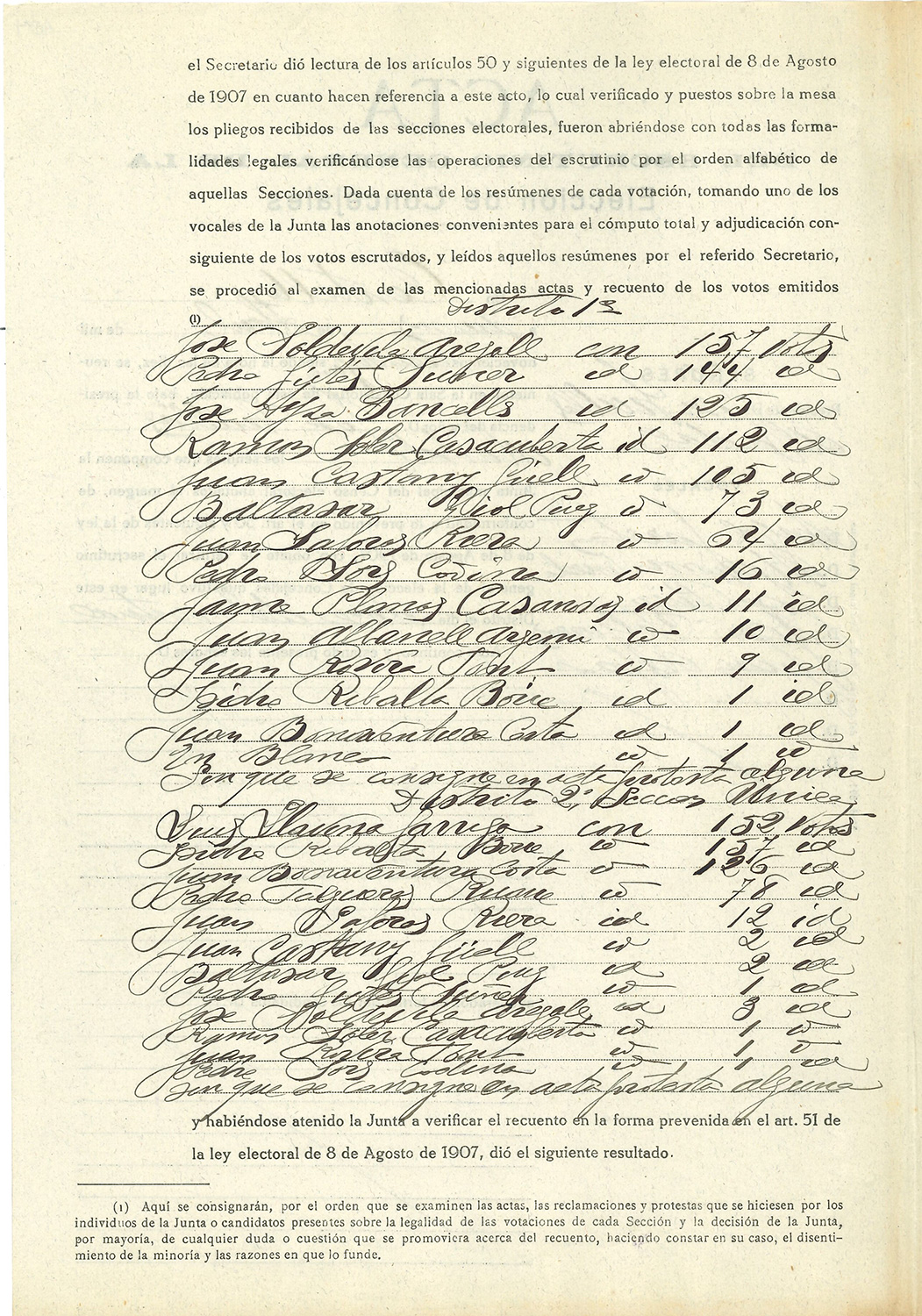 D. José Soldevila Aregall 4 votosComo sea que ninguno de los antes expresados Sres. ha obtenido mayoría de votos anunció el Sr. Presidente iba a procederse a nueva votación dando el siguiente resultado:
